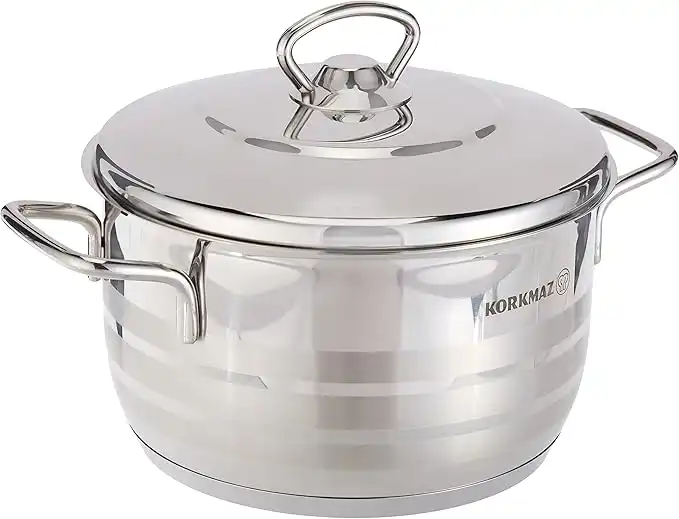 Korkmaz Astra Tri-Ply Bottom Stainless Steel Casserole 18x10 cm / 2.5 L | Sandwich Bottom Induction Compatible Cooking Stock Pot with Lid | Silver - KA1894