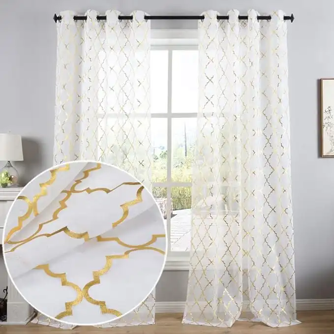 Kotile Moroccan Curtains with Eyelets, Voile, Sheer Foil Print, for Baby Room, 2 Panels, 52 x 63 inches, White Sheer - Gold Moroccan — Price History & Tracker | DeserTracker