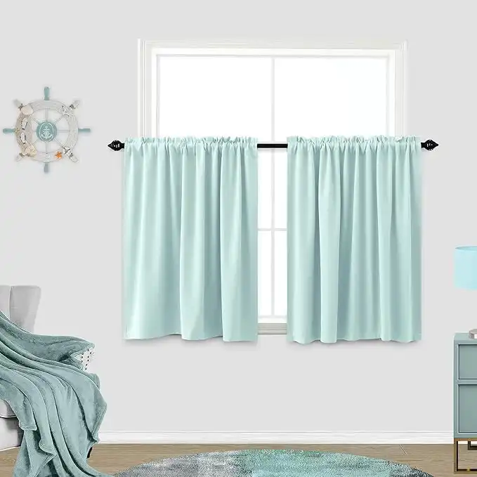 KOUFALL Mint/Seafaom Aqua Green Colored Curtains for Kitchen Window,Thermal Insulated Blackout Cafe Curtain Valances,24 Inch Length — Price History & Tracker | DeserTracker