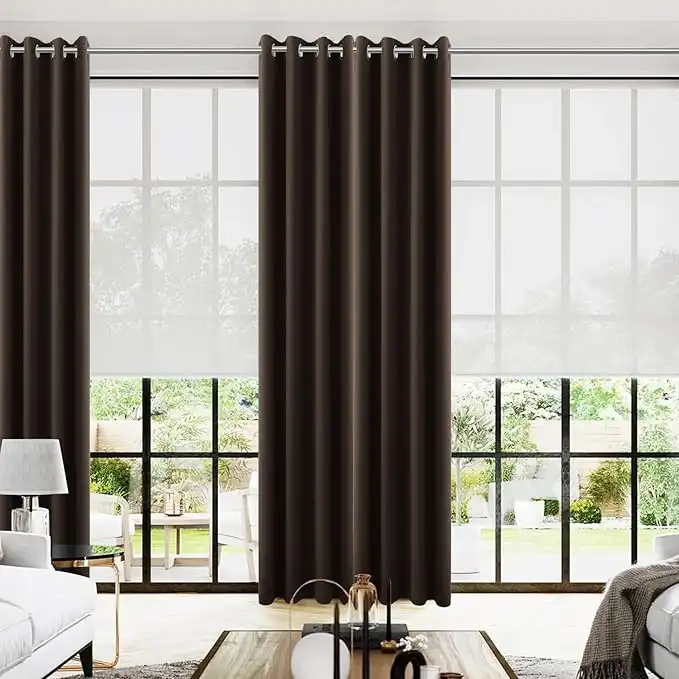 amazon.aeKOUFALL Solid Dark Brown Curtains for Living Room Bay Window,Smooth Satin Touch Polyester Long Size Traditional Rustic Grommet Large Draperies Sliding Glass Door 2 Panels,52 Wide 108 Inch Length