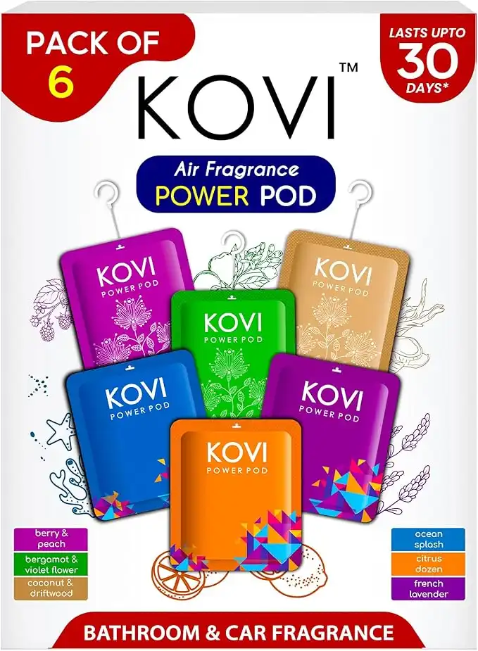 KOVI Air Fragrance Power Pod for Bathroom and Car, Long-Lasting Fragrance, Infused with Essential Oils, Lasts Up to 30 Days, Pack of 6 (10g Each)