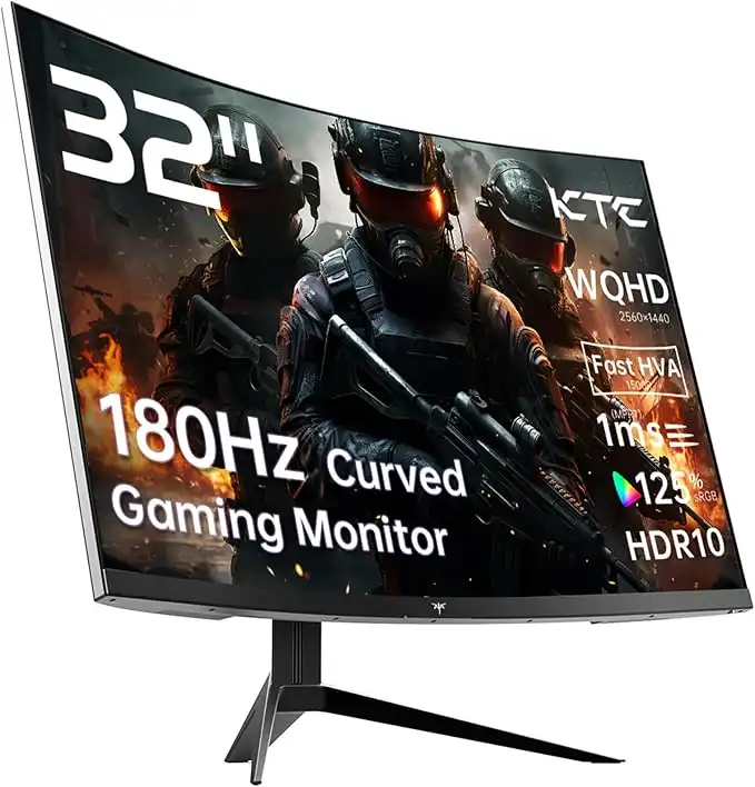 KTC 32 inch 180Hz Curved Gaming Monitor, QHD(2560x1440p) 1ms MPRT, 2K Computer Monitor, 1500R HVA Display, FreeSync Premium, HDR, 120% sRGB, DisplayPort/HDMI/USB, Vesa Support, PC Monitor for Gamers
