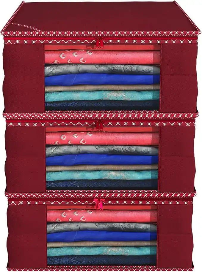 Kuber Industries 3 Piece Non Woven Saree Cover Set, Maroon (46 cm X 35 cm X 22 cm), Standard — Price History & Tracker | DeserTracker