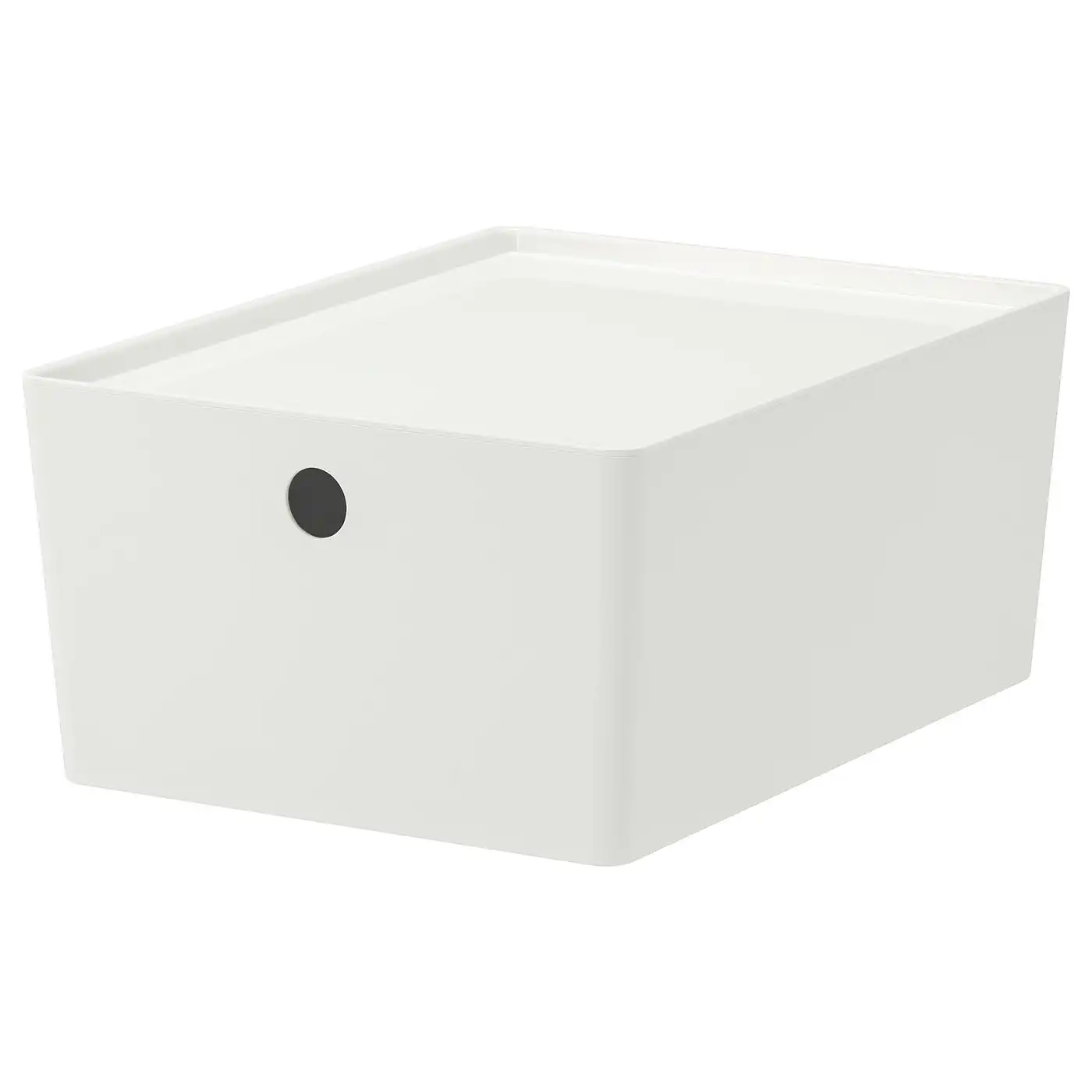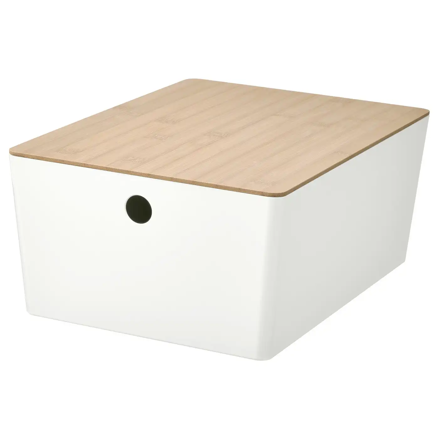 KUGGIS Box with lid - white/bamboo 26x35x15 cm