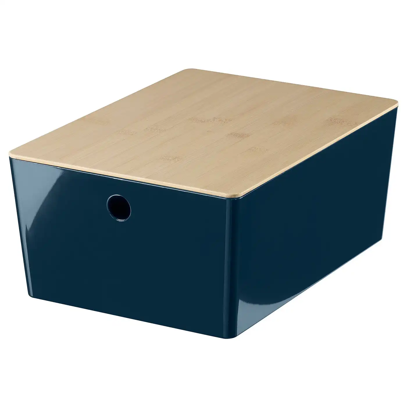 KUGGIS Box with lid - black-blue/bamboo 26x35x15 cm