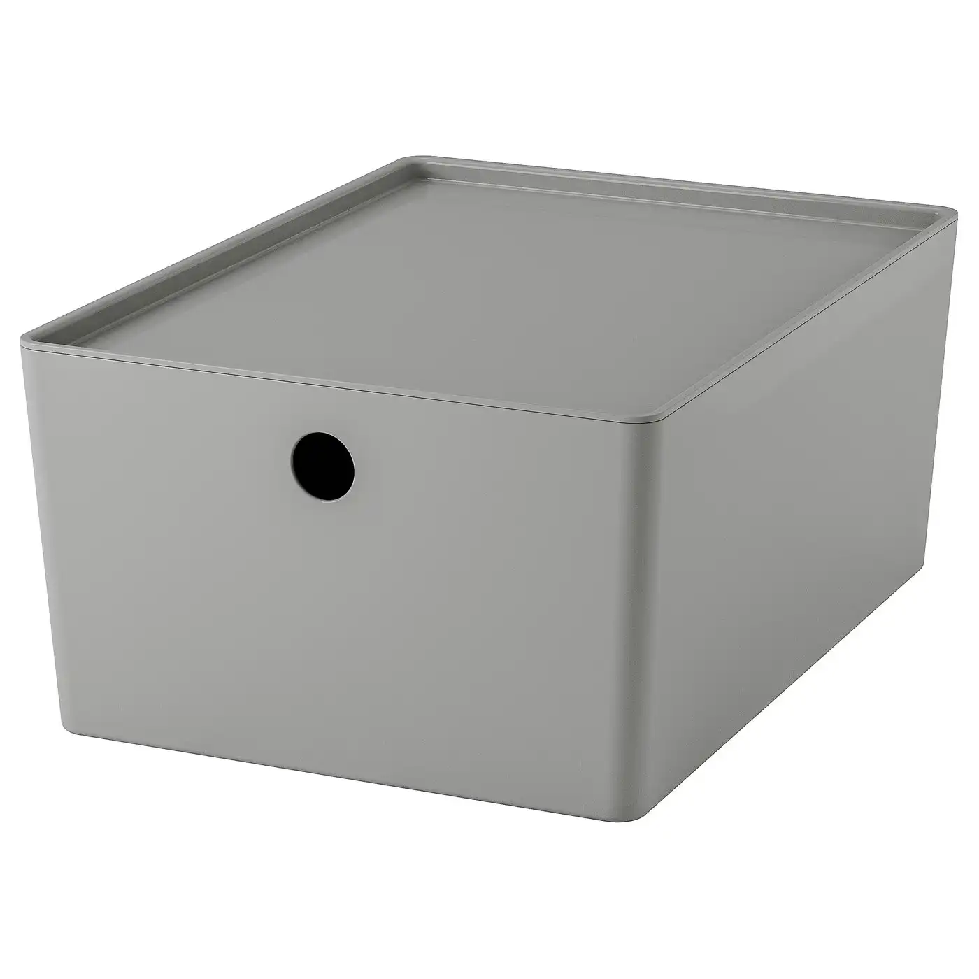 KUGGIS Box with lid - light grey 26x35x15 cm