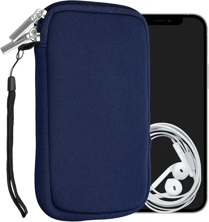 kwmobile Neoprene Phone Pouch Size M - 5.5" - Universal Cell Sleeve Mobile Bag with Zipper, Wrist Strap - Dark Blue — Price History & Tracker | DeserTracker