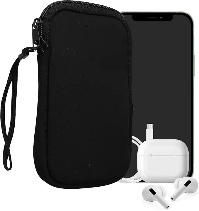 kwmobile Neoprene Phone Pouch Size M - 5.5" - Universal Cell Sleeve Mobile Bag with Zipper, Wrist Strap - Black — Price History & Tracker | DeserTracker