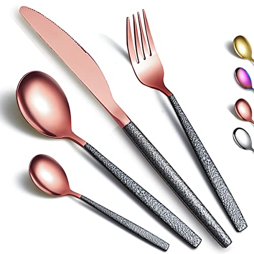 Kyraton Cutlery Set 16 Pieces with Moon Surface Black Handle and Shiny Rose Gold Mouth Titanium Coating Stainless Steel Modern Cutlery Set Utensils Set Service for 4 — Price History & Tracker | DeserTracker