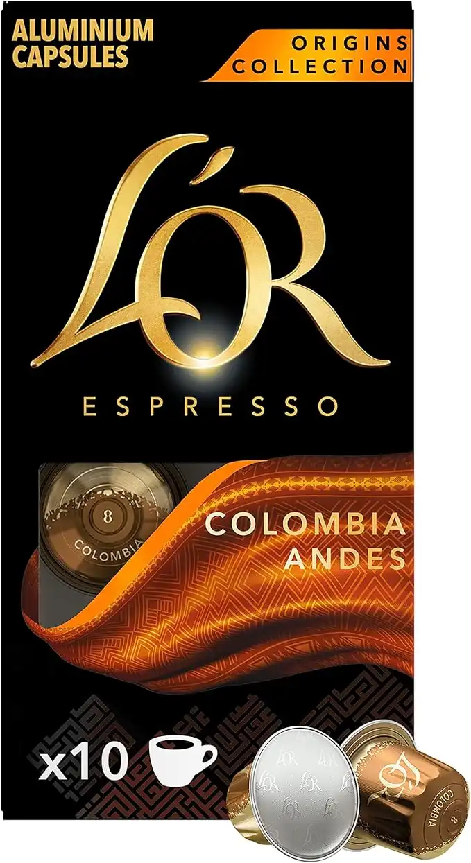 amazon.aeL'OR - Espresso Coffee Capsules - Colombia - Origins Collection - Intensity 8 - Medium Roast- 10 Aluminium Capsules Compatible with Nespresso Original Machine (Pack of 1)