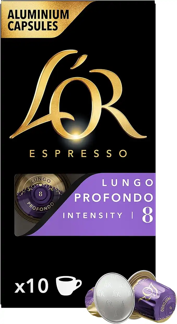 L'OR - Espresso Coffee - Lungo Profondo - Core Collection - Intensity 8 - Medium Roast - 10 Aluminium Capsules Compatible with Nespresso Original Machine (Pack of 1)