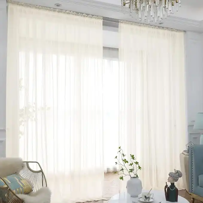 L&TEC Window Beige Sheer Curtains 63 Inches Long 2 Panels Sheer Curtain Basic Rod Pocket Panel for Bedroom Children Living Room Yard Kitchen (Beige, 52" W x 63" L | 2 pcs) — Price History & Tracker | DeserTracker