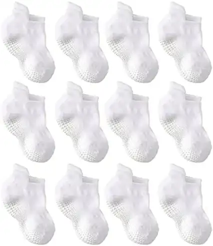 LA Active Baby Toddler Grip Ankle Socks - 12 Pairs - Non Slip/Skid Covered (White, 6-12 Months) — Price History & Tracker | DeserTracker