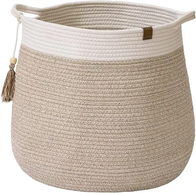 LA JOLIE MUSE Rope Basket Woven Storage Basket - Laundry Basket Large 17.3x 15 x 14.9 Inches Cotton Blanket Organizer, Baby Nursery Containers White Home Decor Gift — Price History & Tracker | DeserTracker