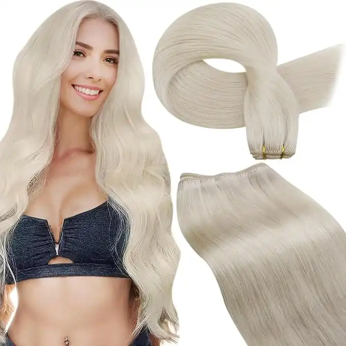 LaaVoo Weft Hair Extensions Human Hair Blonde Sew in Hair Extension Real Human Hair 22 Inch Double Weft Extensions Platinum Blonde Hair 100g — Price History & Tracker | DeserTracker