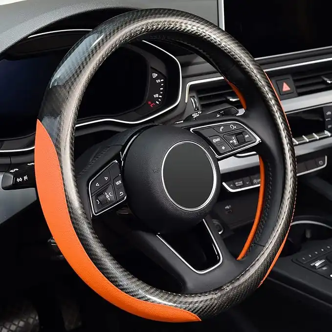LABBYWAY New Carbon Fiber Leather Auto Car Steering Wheel Cover,Universal Fit 15 Inch Anti-Slip Wheel Protector (Orange) — Price History & Tracker | DeserTracker