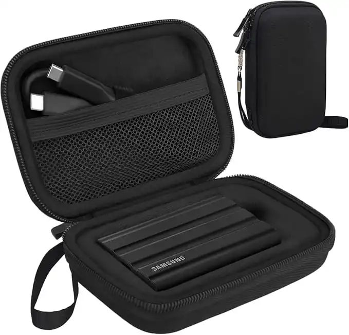 Lacdo Hard Carrying Case for Samsung T7 Shield / T7 / T7 Touch Portable Solid State Drives 500GB 1TB 2TB USB 3.2 External SSD Hard EVA Shockproof Storage Travel Bag, Black+Black