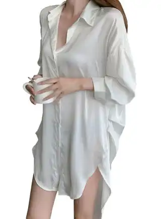 Ladies Spring And Summer Long-Sleeved White Shirt Nightdress Solid Colour Sleepwear Nightwear — Price History & Tracker | DeserTracker