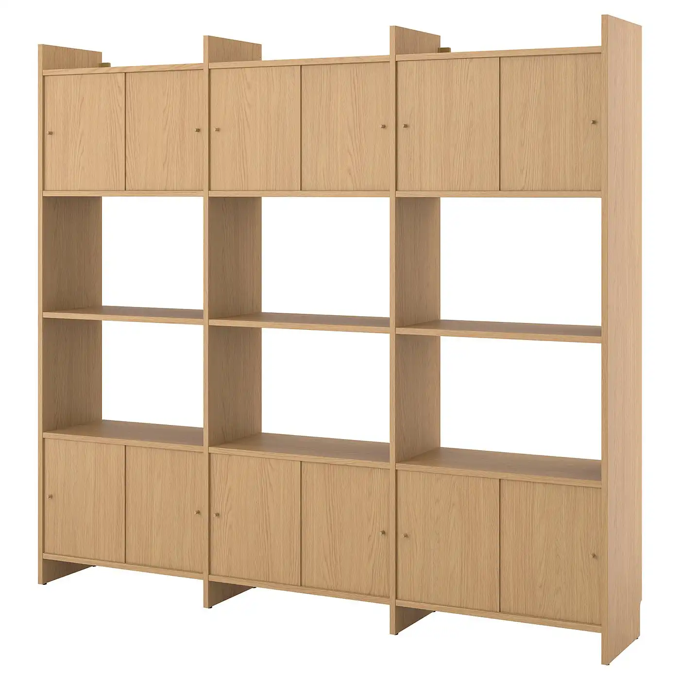 LÅDMAKARE Storage combination w sliding doors - with 9 shelves/oak effect 238x35x212 cm