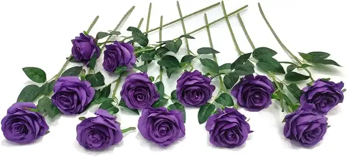 Laelfe 12 pcs Artificial Roses Flowers Long Stem Fake Silk Rose for Home Wendding Decorations (Purple) — Price History & Tracker | DeserTracker