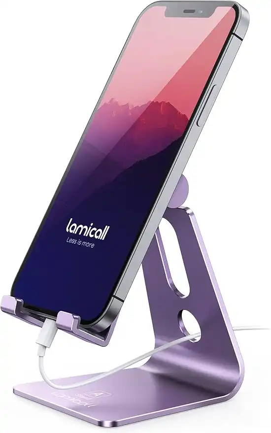Lamicall Adjustable Phone Stand, Cell Phone Holder Desk, Compatible with Phone 13 12 Mini 11 Pro Xs Max XR X 8 7 6 Plus SE, Smartphones Dock, Office Desktop Accessories - Purple
