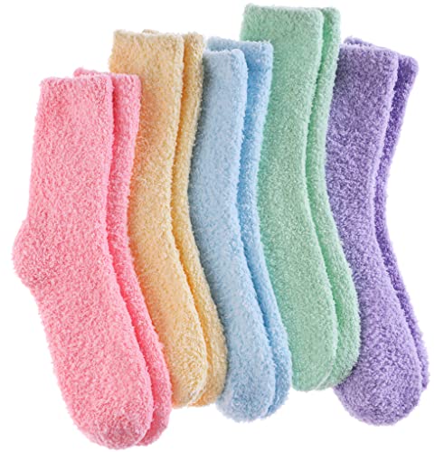 LANLEO 5/6 Pairs Womens Super Soft Fuzzy Plush Warm Winter Home Sleeping Slipper Socks, 5 Pairs Solid Color Style D, One size