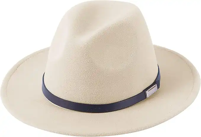 Lanzom Damen Panamahut mit breiter Krempe, Retro-Stil, Grtelschnalle, Wolle, Fedorahut, passend fr Gre 39,5-40,5