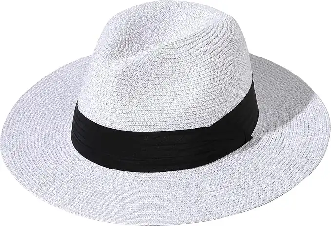 Lanzom Women Wide Brim Straw Panama Roll up Hat Fedora Beach Sun Hat UPF50+ — Price History & Tracker | DeserTracker