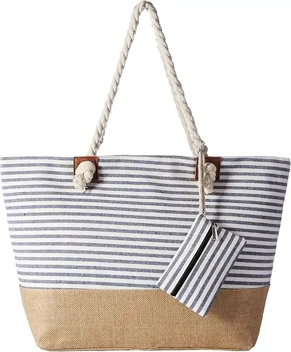 Large Beach Bag with Zipper Shoulder Shopping Bag