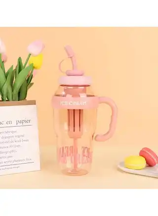 Large Capacity 1300ml Water Bottle with Straw and Handle Portable Stylish Cold Resistant Heat Resistant Leak Proof BPA Free - For Adults Students Office Car Outdoor - (Color: Pink)
