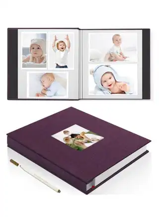 Large Photo Album Scrapbook with Window, Linen Self Adhesive Scrapbook Album, Wedding Anniversary Birthday Valentines Day, 28cm x 27cm 40 Blank Pages Memory Book with A Metallic Pen Purple