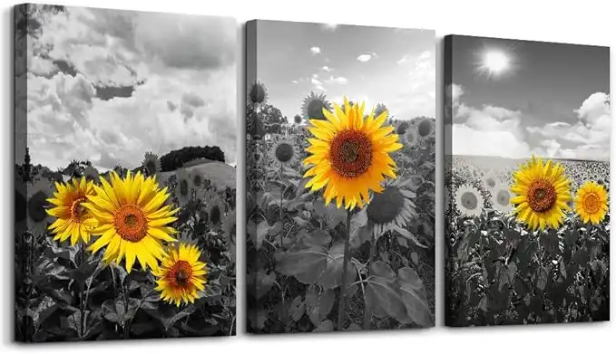 amazon.aeLarge size Canvas Wall Art for Living Room family Bedroom wall painting Decoration,Bathroom Wall Decor kitchen Home Decoration Black and white sunflower flowerswall pictures artwork,16x24 3 pie