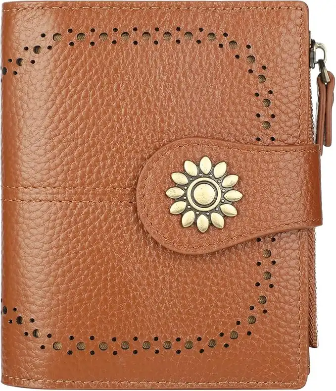 Lavemi Womens Leather Wallet Small Compact RFID Blocking Credit Card Case Purse with Zipper Pocket(Pebbled Brown) — Price History & Tracker | DeserTracker