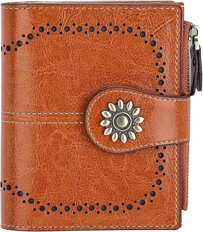 Lavemi Womens Leather Wallet Small Compact RFID Blocking Credit Card Case Purse with Zipper Pocket(Tan) — Price History & Tracker | DeserTracker
