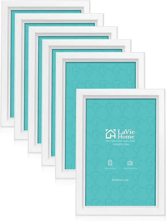 amazon.aeLaVie Home 4x6 Picture Frames (6 Pack, White) Simple Designed Photo Frame with High Definition Glass for Wall Mount & Table Top Display, Set of 6 Classic Collection