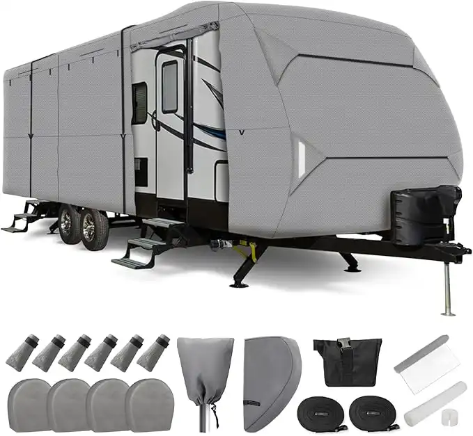 Leader Accessories Travel Trailer RV Cover Windproof Extra Thick Upgraded 5 Layers Camper Cover with Adhesive Repair Patches (1Grey, Fits 14'-16') — Price History & Tracker | DeserTracker