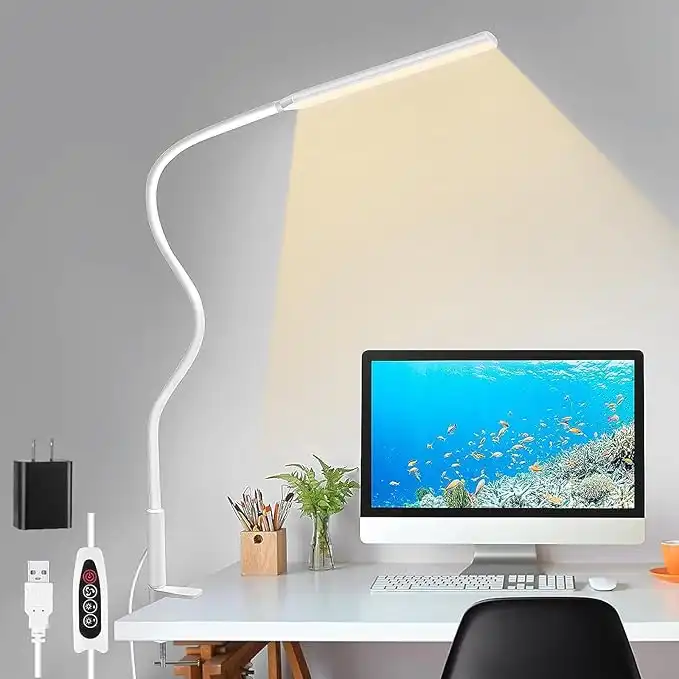 amazon.comLED Desk Lamp with Clamp, USB Power Eye-Care Swing Arm Lamp, 3 Color Modes 10 Brightness Levels Reading Desk Lamp, 360° Adjustable Gooseneck Clip on Desk Light for Reading, Home, Office-WHITE