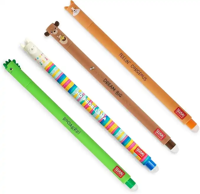 Legami Set of 4 Erasable Gel Pens, Teddy Bear, Corgi, Llama Themes, Ball on the End for Removing Ink, Black, Blue, Green, Red Heat-Sensitive Ink, Tip Diameter 0.7 mm — Price History & Tracker | DeserTracker