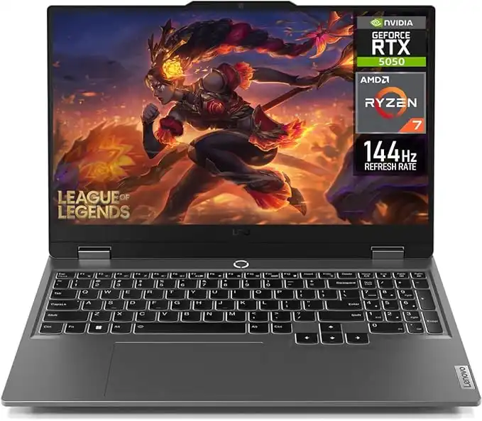 Lenovo LOQ 15 Gaming Laptop with 15.6” FHD 144Hz Display, AMD Ryzen 7-250 Processor, 16GB DDR5 RAM, 512GB SSD, NVIDIA GeForce RTX 5050 GPU 8GB GDDR7, White Backlit English Keyboard, Windows 11, Grey