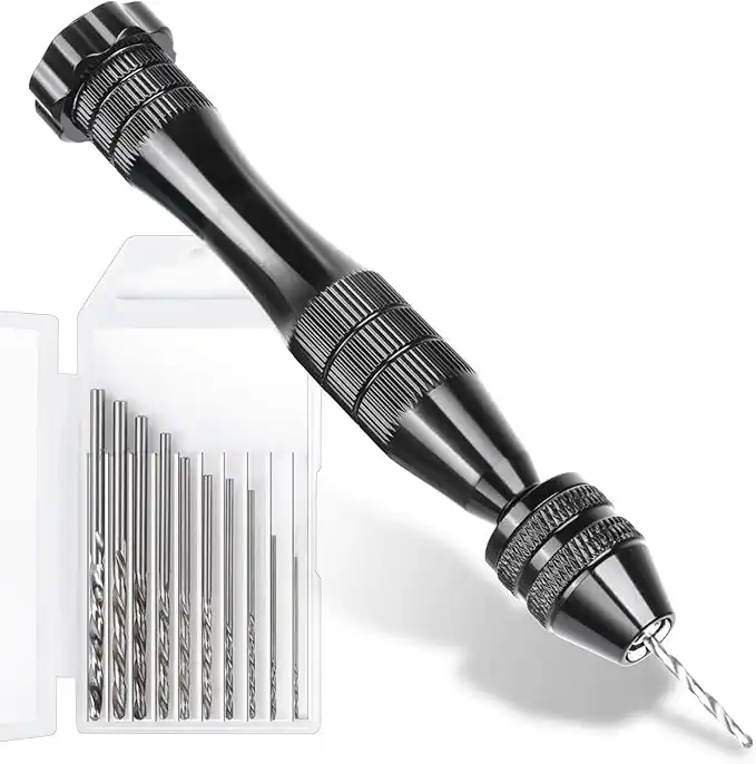 LEOBRO Hand Drill for Resin Molds, 12 cm Black Pin Vise with 10 PCS Steel Drill Bits (0.8-3mm), for Drilling Holes in Epoxy Resin, Polymer Clay, Wood, Making Jewelry Keychain Pendant