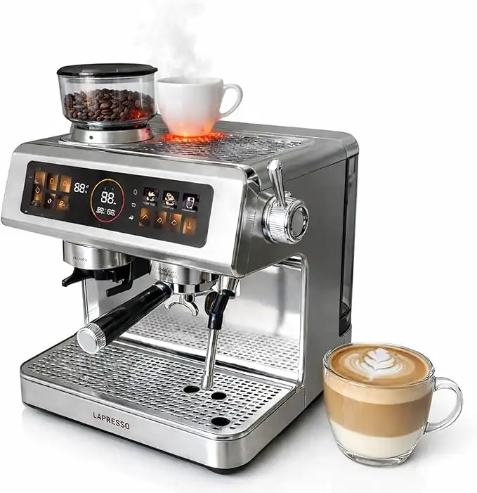 amazon.aeLePresso Semi-Automatic Coffee Machine with Milk Frother & Grinder, Dual Boiler Espresso Maker, Cup Warmer, Bean to Cup Espresso Machine, Touch Panel, 20Bar Pump, Cappuccino, Latte & Macchiato
