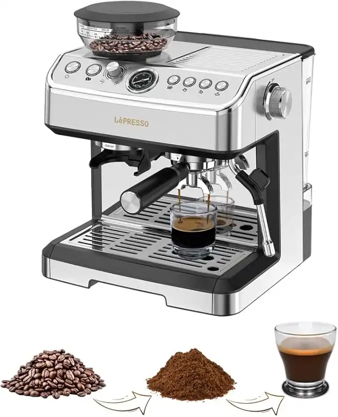 amazon.aeLePresso Espresso Machine with Built-in Coffee Grinder,Dual Boiler Machine, Milk Frother Steam Wand, 2300W Professional Coffee Maker, 25 Bar Italian Pump,Perfect Cappuccino, Espresso & Latte - Grey