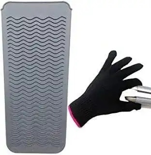 Lessmon Heat Resistant Mat Pouch and Heat Resistant Glove for Curling Irons, Hair Straightener, Flat Irons and Hair Styling Tools 11.2" x 5.5", Gray