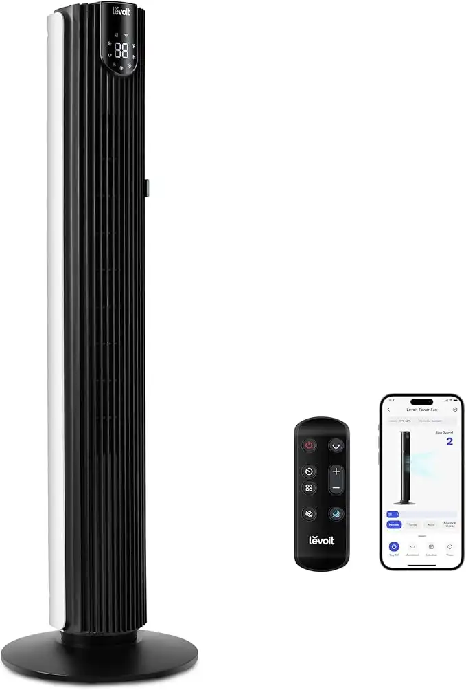 LEVOIT Smart Control 25dB Silent Tower Fan 42Inch, 7.9m/s Powerful Electric Coolness Fan for Bedroom, DC Motor, 90° Oscillating and 60° Up and Down, Voice Control 4 Modes 12 Speeds 【2-Years Warranty】