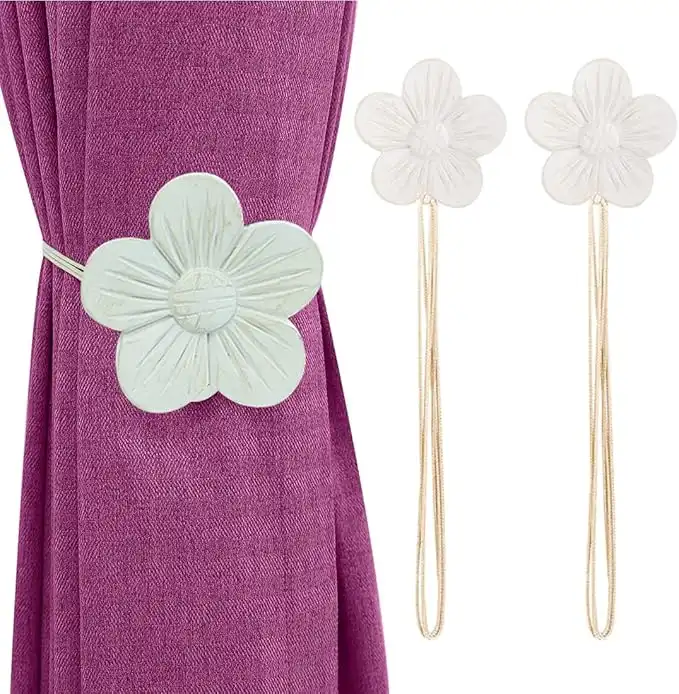 Lewondr Vintage Magnetic Curtain Tieback, 1 Pair Resin Flower Curtain Drapery Holdback Window Curtain Decorative Buckle Holder for Home Cafe Balcony - Beige — Price History & Tracker | DeserTracker