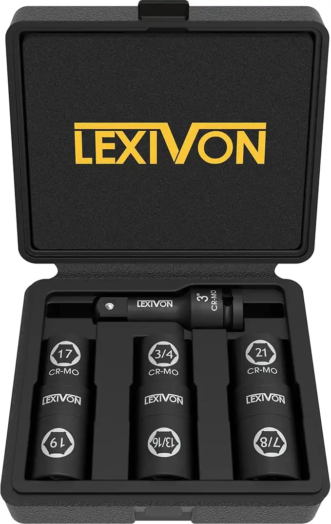 amazon.aeLexivon 1/2" Impact sockets Set, 17 19 21mm Impact Lug nut Socket + 3/4", 13/16", 7/8" Wheel sockets, Cover Most commonly Used Wheels Nuts, Comes with 7.5mm Extension bar, 6 Point Axle Nut (LX-111)