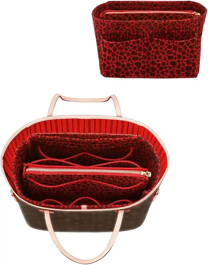 amazon.aeLEXSION Felt Purse Bag Organizer Insert with zipper Bag Tote Shaper Fit Speedy Neverful PM MM, 2-Red, XL