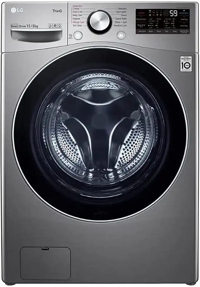 LG 15 Kg Washer & 8 Kg Dryer Front Load, Direct Drive Motor 1400 RPM 12 Programmers Color Silver Model - F0L9DGP2S (International Version).