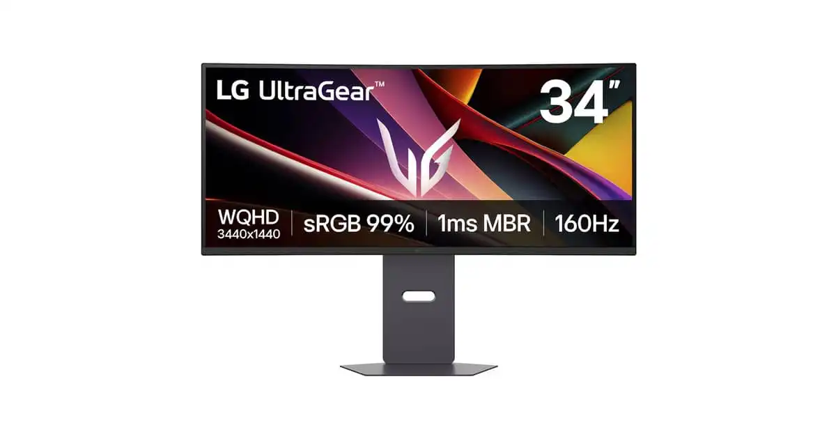LG 34″ UltraGear™ WQHD Curved Gaming Monitor, 160Hz, 1ms MBR, NVIDIA G-SYNC – 34G600A-B