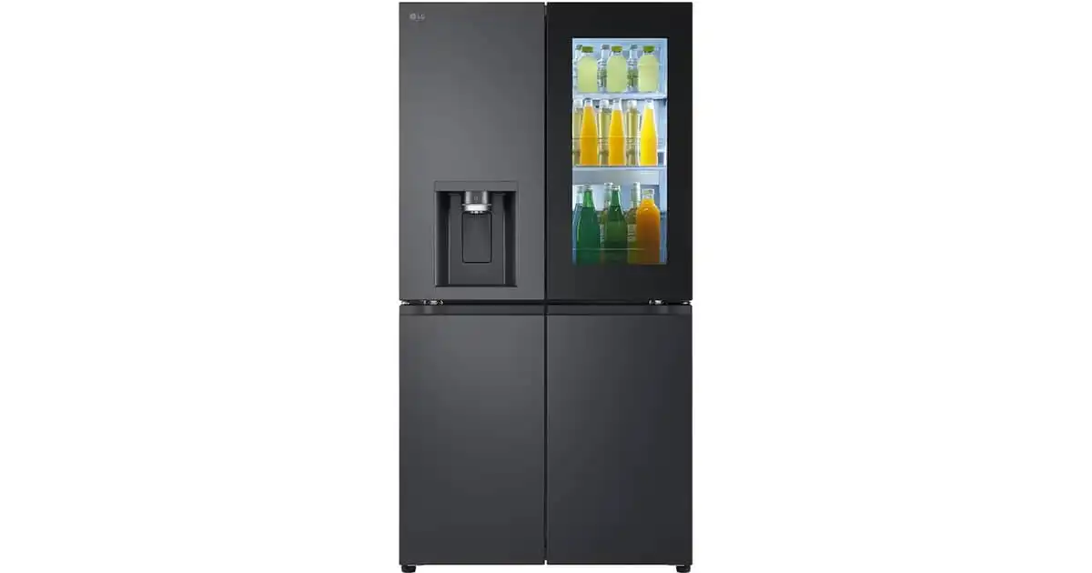 LG Black Glass InstaView 681L, French Door Refrigerator, Smart Inverter, Essence Black Steel GR-X34FFCAB